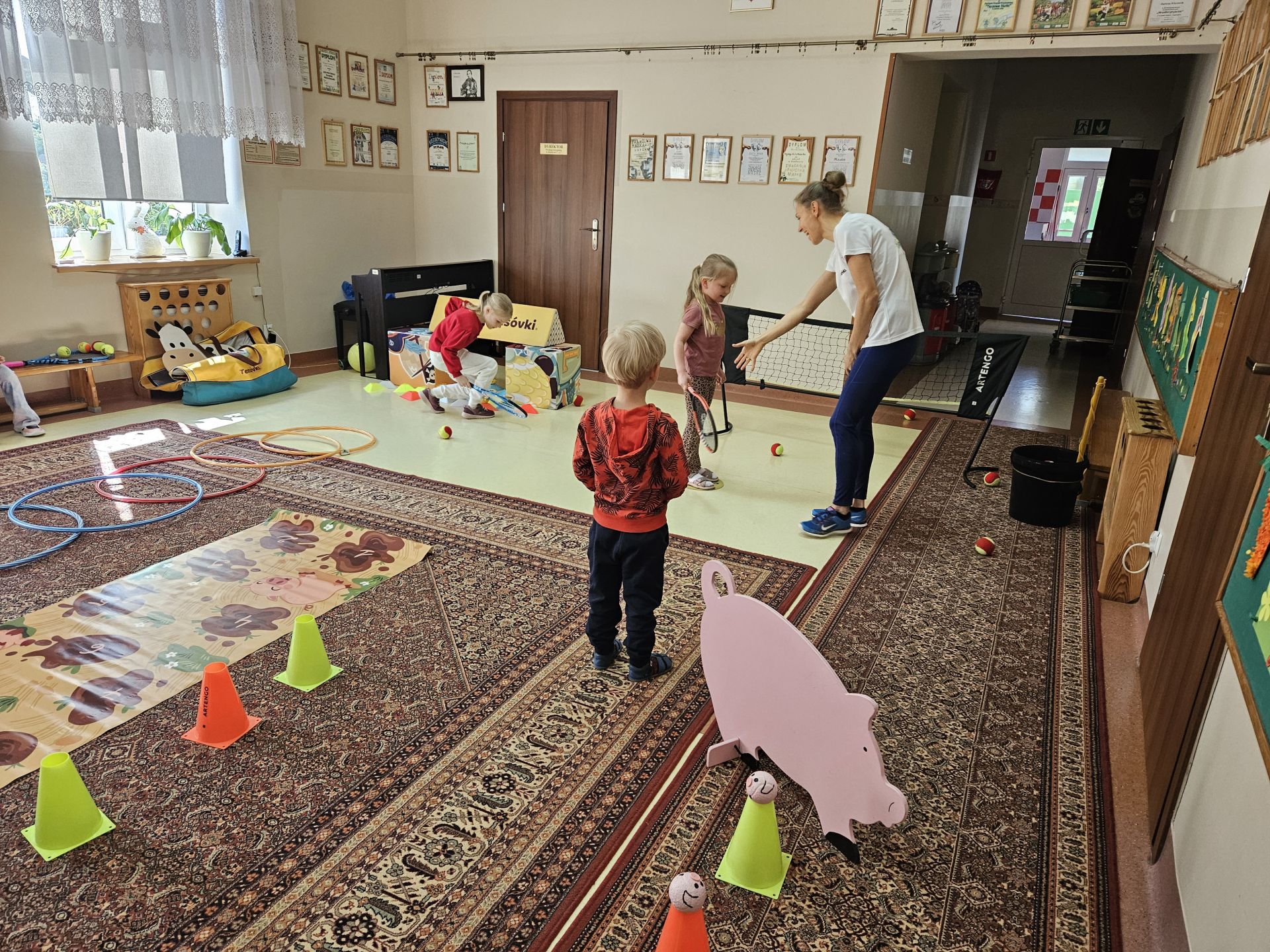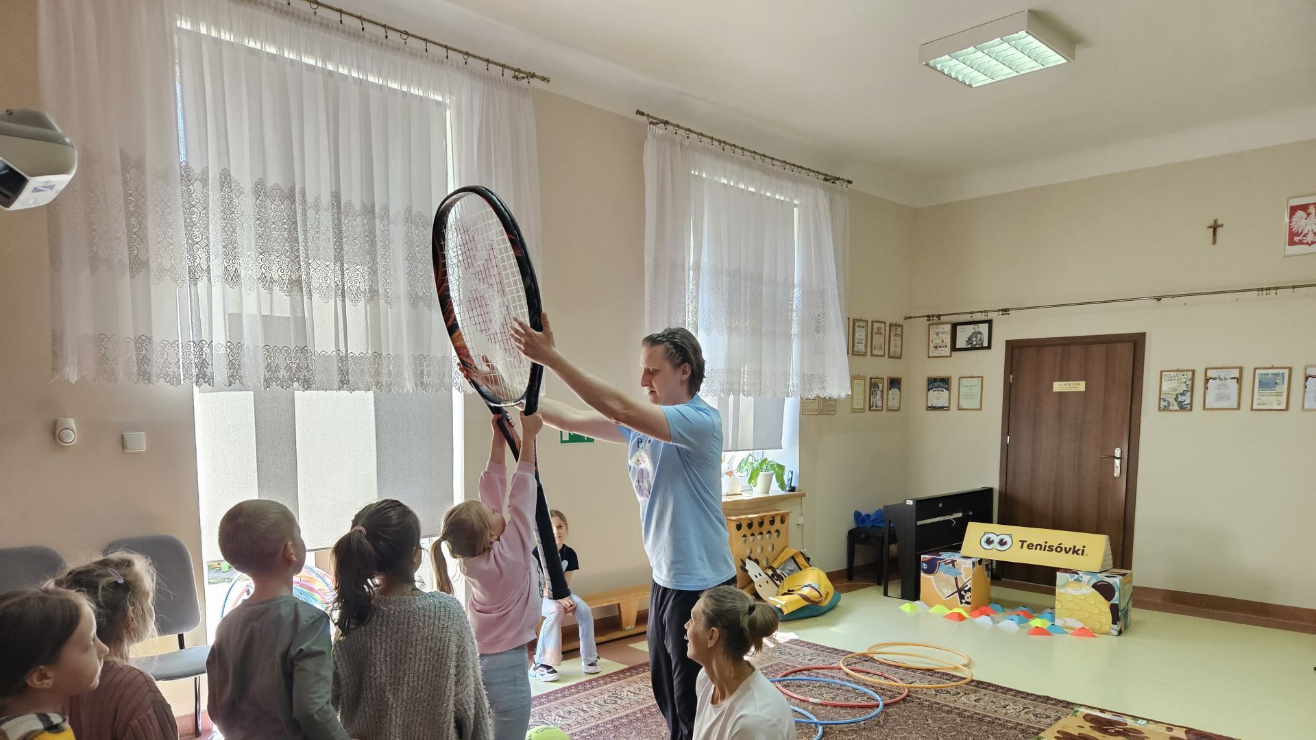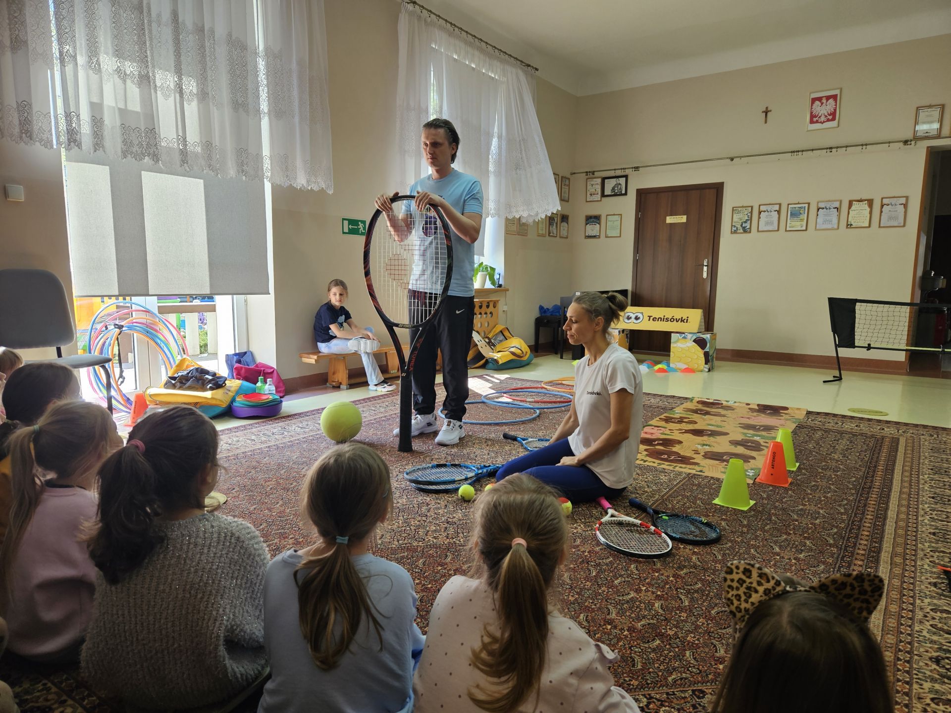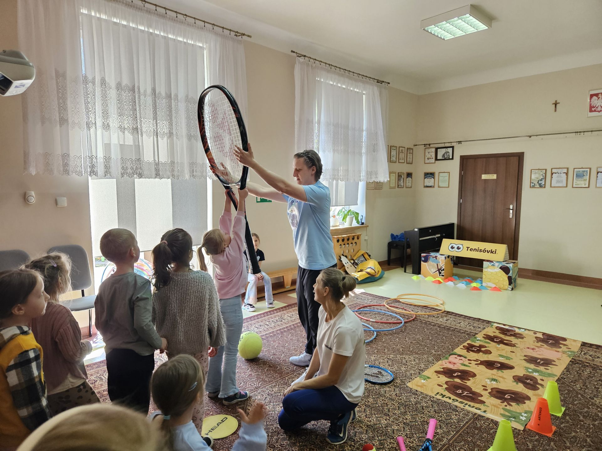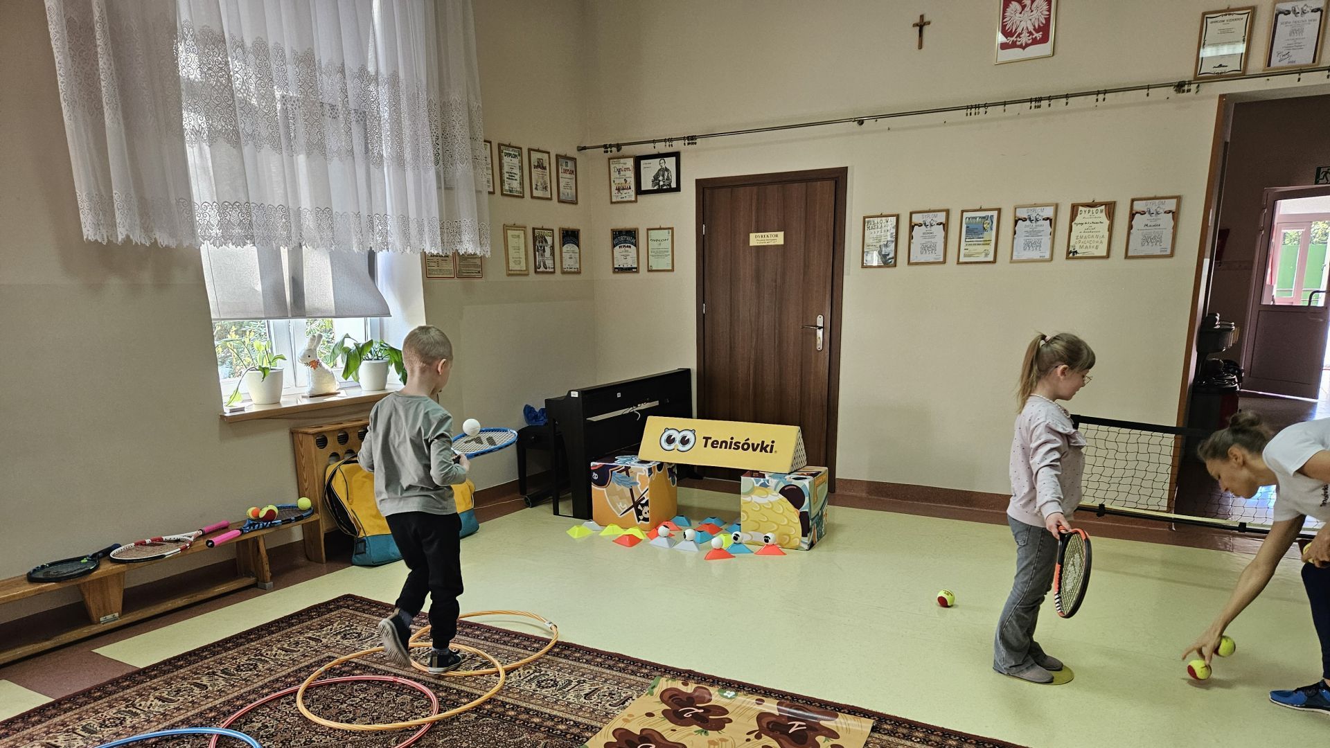 Podczas zajęć przedszkolaki mogły zobaczyć i dotknąć prawdziwych rakiet oraz piłek tenisowych, a specjalnie przygotowany tor przeszkód sprawił, że każde dziecko mogło aktywnie spróbować swoich sił.