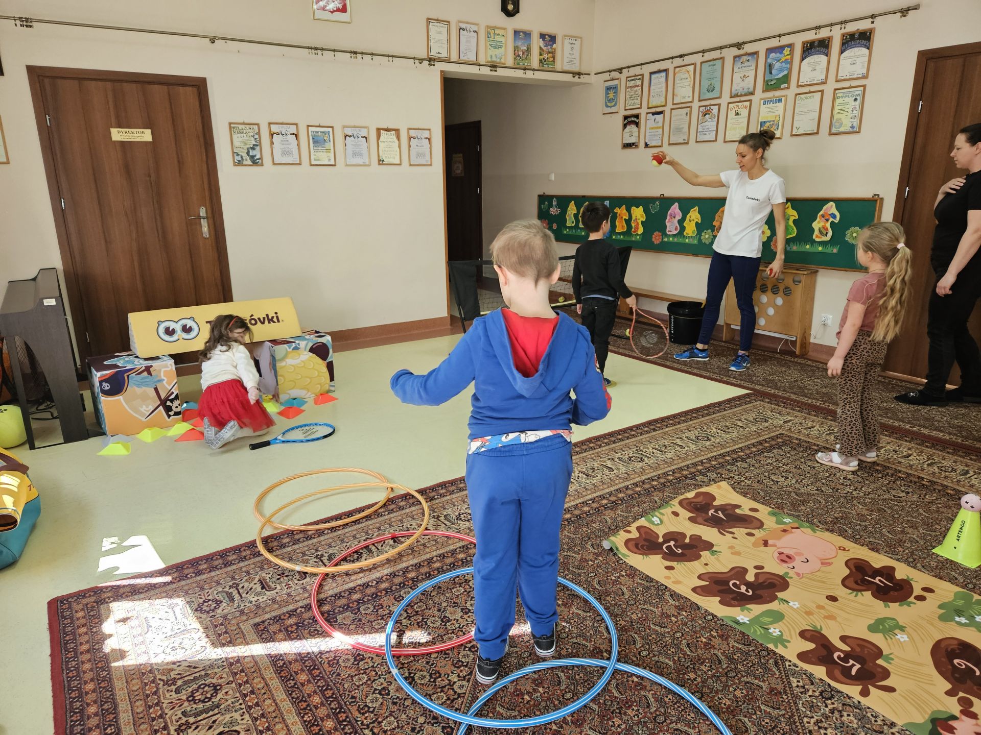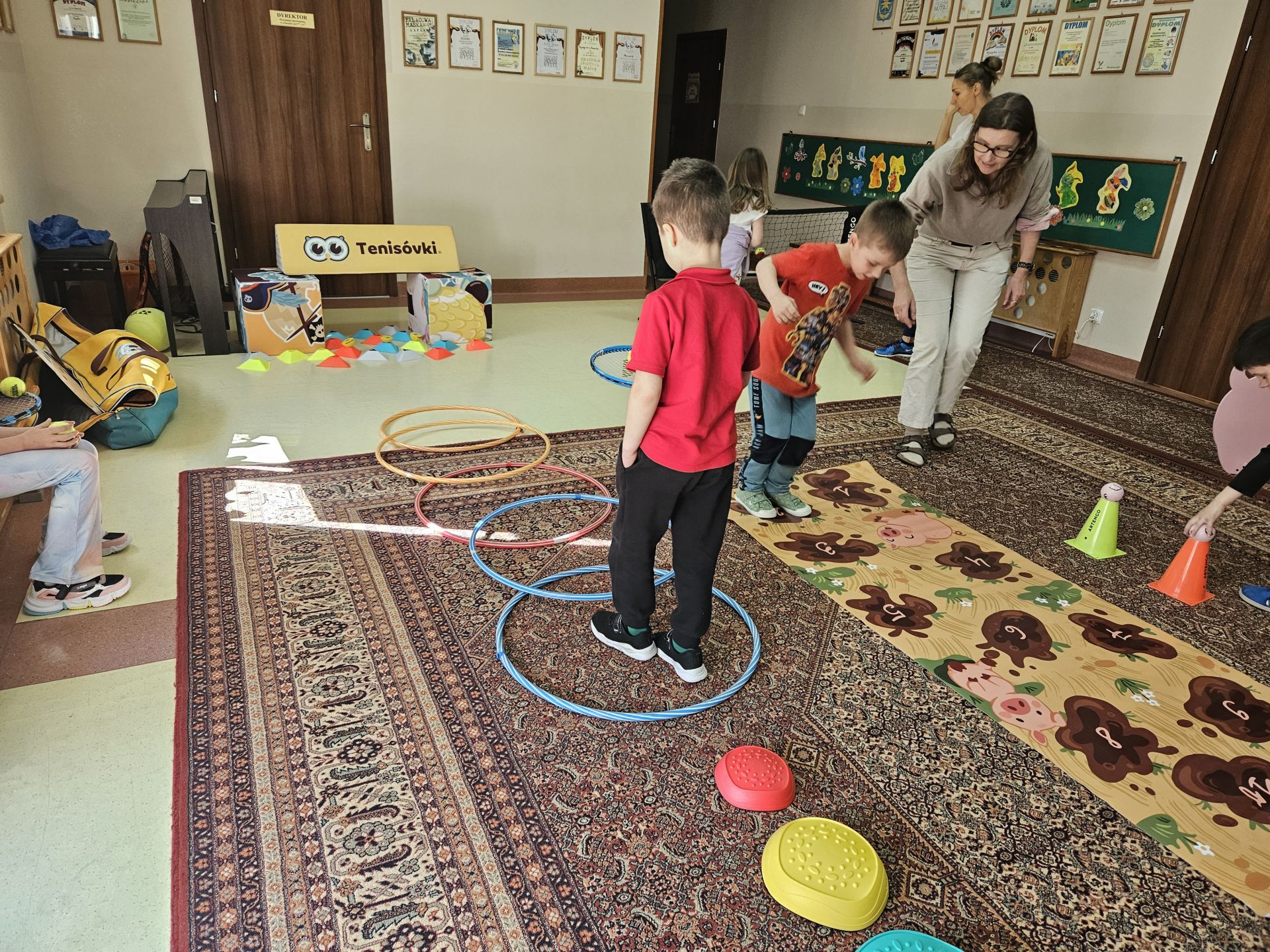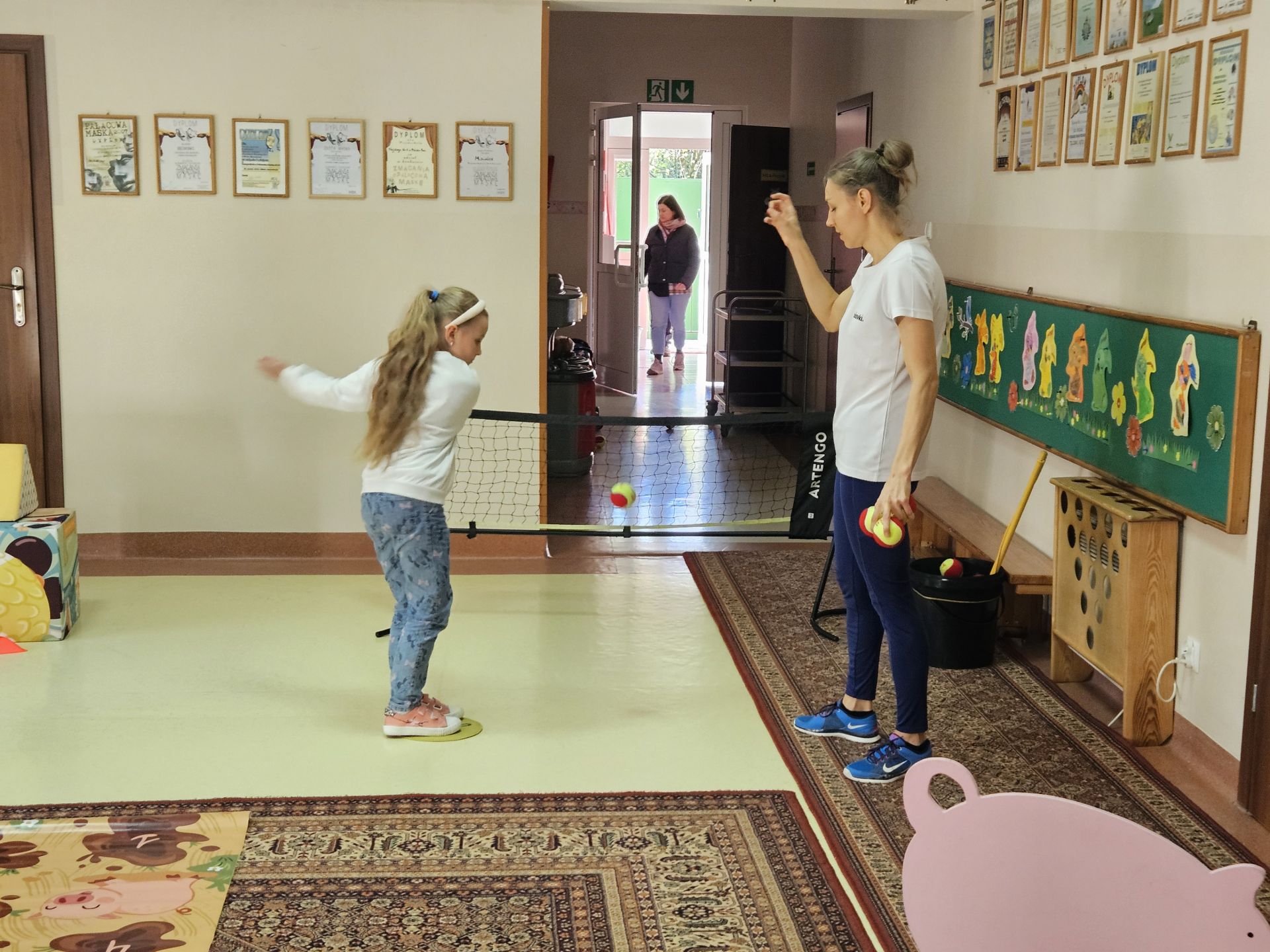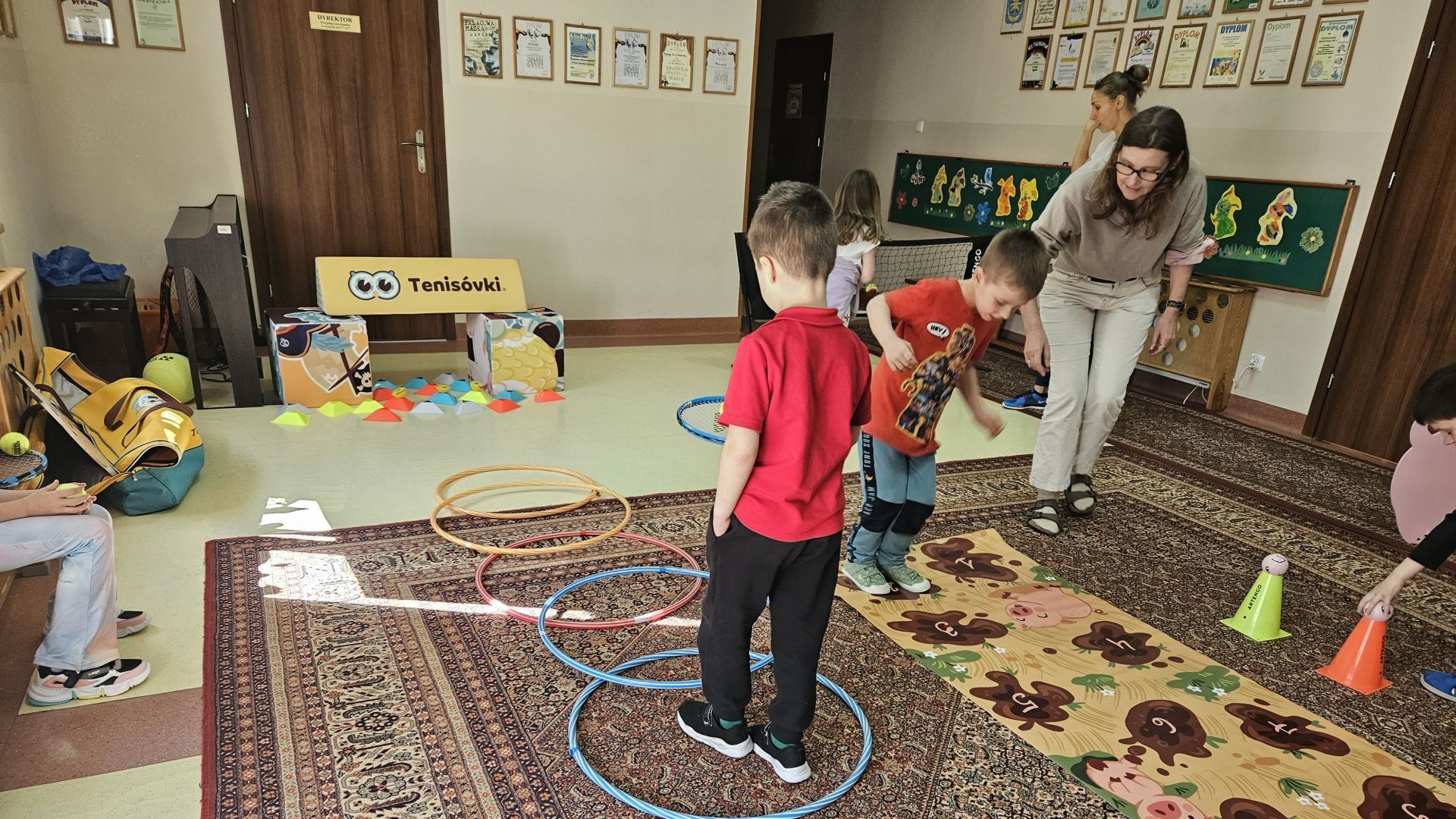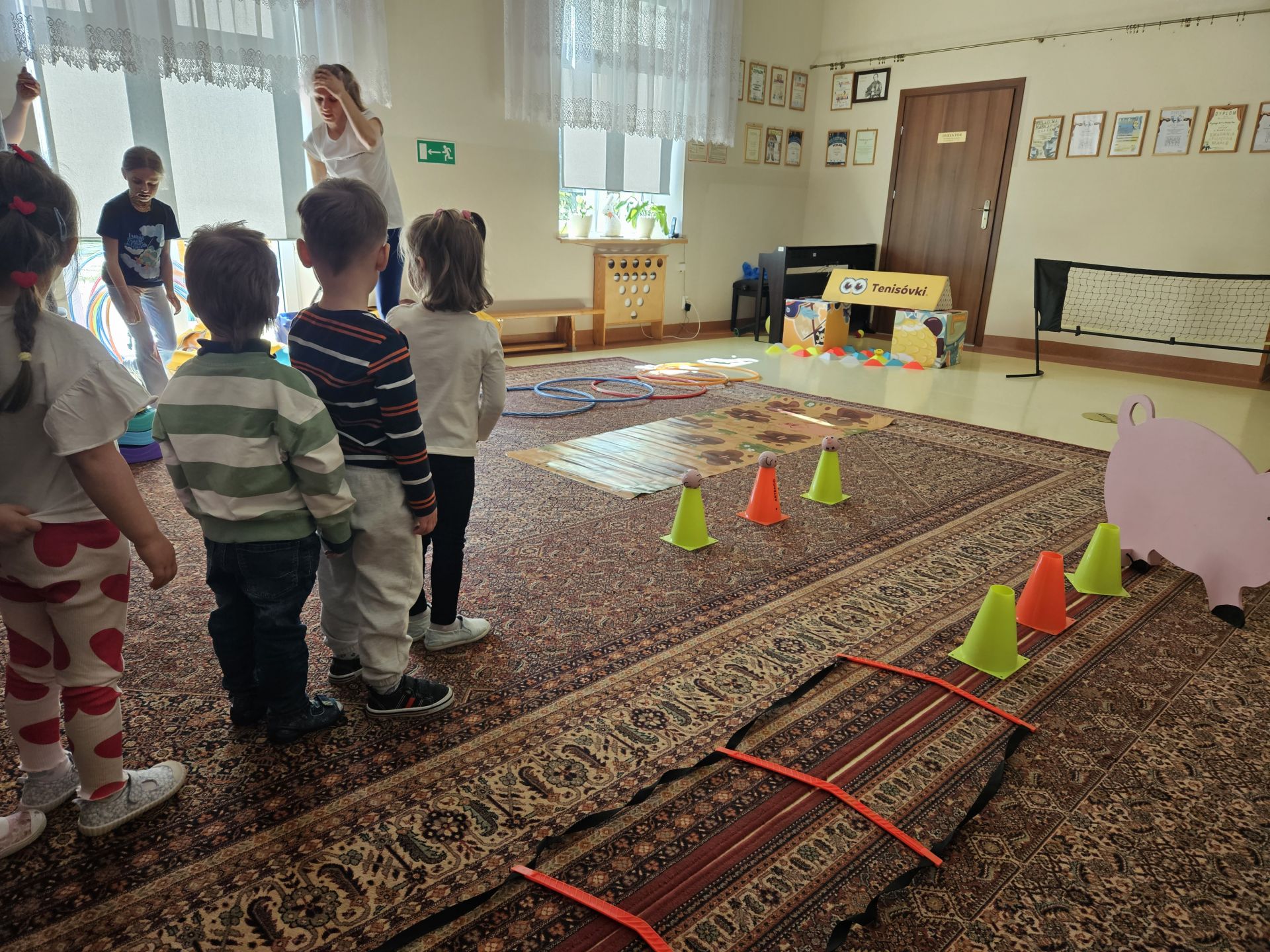 Podczas zajęć przedszkolaki mogły zobaczyć i dotknąć prawdziwych rakiet oraz piłek tenisowych, a specjalnie przygotowany tor przeszkód sprawił, że każde dziecko mogło aktywnie spróbować swoich sił.